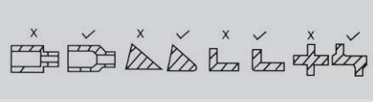 鑄件結(jié)構(gòu)應(yīng)避免急劇變化,盡可能避免尖角,圓角應(yīng)達(dá)到RO.3以上 | ![]() | ||